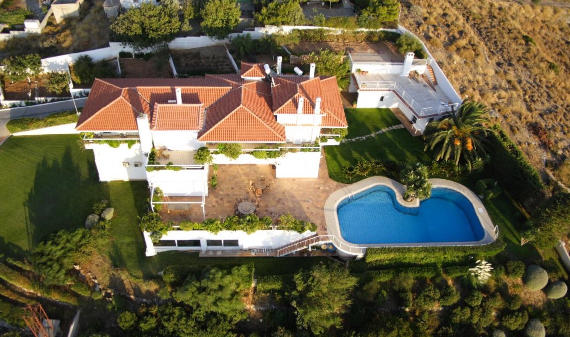 Η κατοικία είναι κτισμένη σε τρία επίπεδα (όροφοι). Η συνολική επιφάνεια του κύριου κτίσματος ξεπερνά τα 1.000,00τ.μ.. Συγκεκριμένα, αποτελείται από υπόγειο, ισόγειο, Α’ όροφο, εξωτερική τραπεζαρία με κουζίνα, γκαράζ και υπαίθριο πάρκινγκ. Εντός του υπολοίπου χώρου, 8 στρεμμάτων και πλέον, υπάρχουν βοηθητικοί χώροι, εξωτερική πισίνα, εγκαταστάσεις αυτονομίας, χώροι εκτροφής ζώων, περιβόλια – παρτέρια και πλήθος οπωροφόρων δένδρων. Τέλος, η κατοικία πλαισιώνεται από έναν μεγάλο κήπο, αποτελούμενο από διάφορα είδη φυτών και δένδρων.